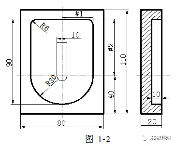 如图1-2所示,用#1、#2表示轮廓左右和上边界尺寸,编程零点在R30圆心,加工起始点放在轮廓右上角(可削除接刀痕)